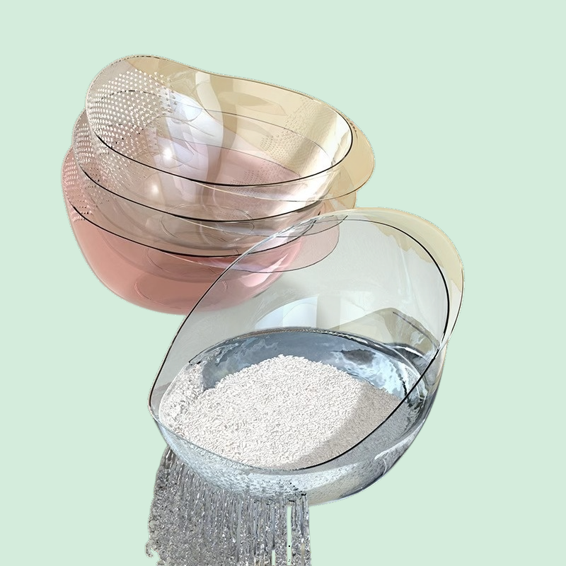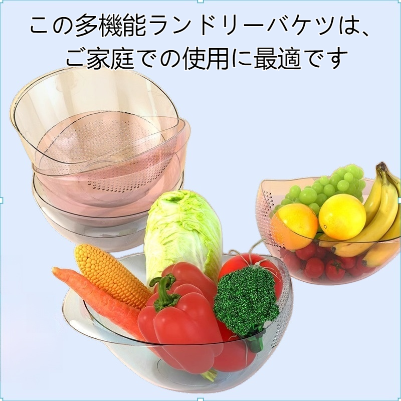 プラスチック製で耐久性が高く、米洗いや野菜・果物の水切りに便利。ハンドル付きで持ち運び簡単。家庭用に最適な多機能洗い桶。