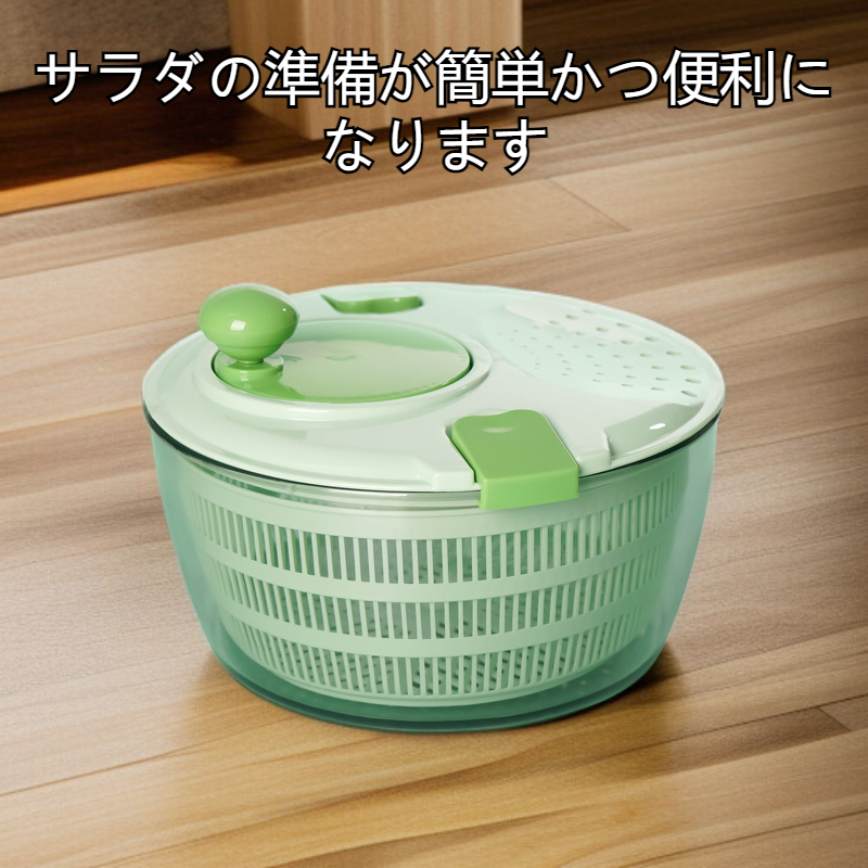 FDA認証の乾燥機。プラスチックフィルターバスケット採用。果物や野菜の洗浄・水切り・乾燥に最適。サラダ作りが簡単。